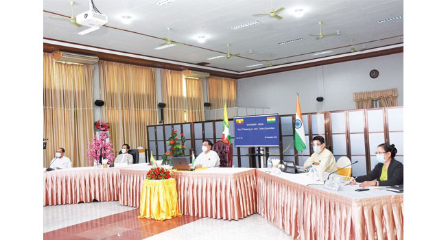 သတ္တမအကြိမ် မြန်မာ- အိန္ဒိယ ကုန်သွယ်ရေးပူးတွဲကော်မတီ အစည်းအဝေးကို ယနေ့ မွန်းလွဲ ၁၂ နာရီခွဲက စီးပွားရေး နှင့် ကူးသန်းရောင်းဝယ်ရေးဝန်ကြီးဌာန ညီလာခံခန်းမ၌ Virtual စနစ်ဖြင့် ကျင်းပသည်။