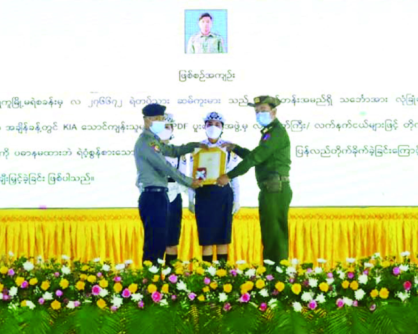 ဆက်လက်၍ တိုင်းဒေသကြီး နှင့် ပြည်နယ် ဝန်ကြီးချုပ်များ၊ တိုင်းမှူးများနှင့် တာဝန်ရှိသူ များက မြန်မာနိုင်ငံရဲတပ်ဖွဲ့ဆိုင်ရာ ဂုဏ်ထူးဆောင် ဆုတံဆိပ်ရရှိသူ များအား ဂုဏ်ပြုဆုတံဆိပ်၊ ဂုဏ်ပြု မှတ်တမ်းလွှာများနှင့် ဂုဏ်ပြုဆုငွေများ ပေးအပ်ချီးမြှင့် ကြပြီး ရဲတပ်ဖွဲ့နေ့ အထိမ်း အမှတ် Video Clip နှင့် ခင်းကျင်း ပြသထားသော ပြခန်းများကို လိုက်လံကြည့်ရှုသည်။