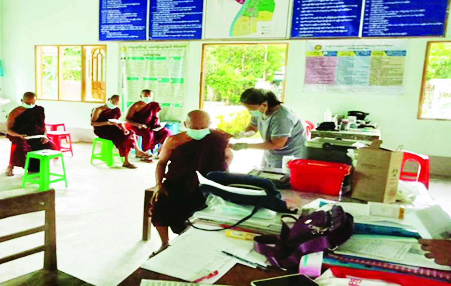 ထိုသို့ဆောင်ရွက်လျက်ရှိရာ ယနေ့တွင် ဧရာဝတီ တိုင်းဒေသကြီးအတွင်းရှိ မြို့နယ် ၂၆ မြို့နယ်၌ ဒေသခံပြည်သူ ၈၄၉၅ ဦး၊ ရခိုင်ပြည်နယ်နှင့် ချင်းပြည်နယ်အတွင်းရှိ မြို့နယ် ငါးမြို့နယ်၌ ဒေသခံပြည်သူ ၉၀၃ ဦးနှင့် မန္တလေးတိုင်းဒေသကြီး အတွင်းရှိ ခရိုင် ခုနစ်ခု၌ ဒေသခံပြည်သူ ၇၆၅၆ ဦး တို့ကို တပ်မတော်မှ ဆေးအဖွဲ့များက ပြည်သူ့ ဆေးရုံများမှ ဆရာဝန်များ၊ သက်ဆိုင်ရာ ကျန်းမာရေး ဝန်ထမ်းများ၊ စေတနာ့ဝန်ထမ်းများနှင့် ပူးပေါင်း၍ ကိုဗစ်-၁၉ ရောဂါ ကာကွယ်ဆေး ထိုးနှံပေးခြင်းများ ဆောင်ရွက်ပေးသည်။