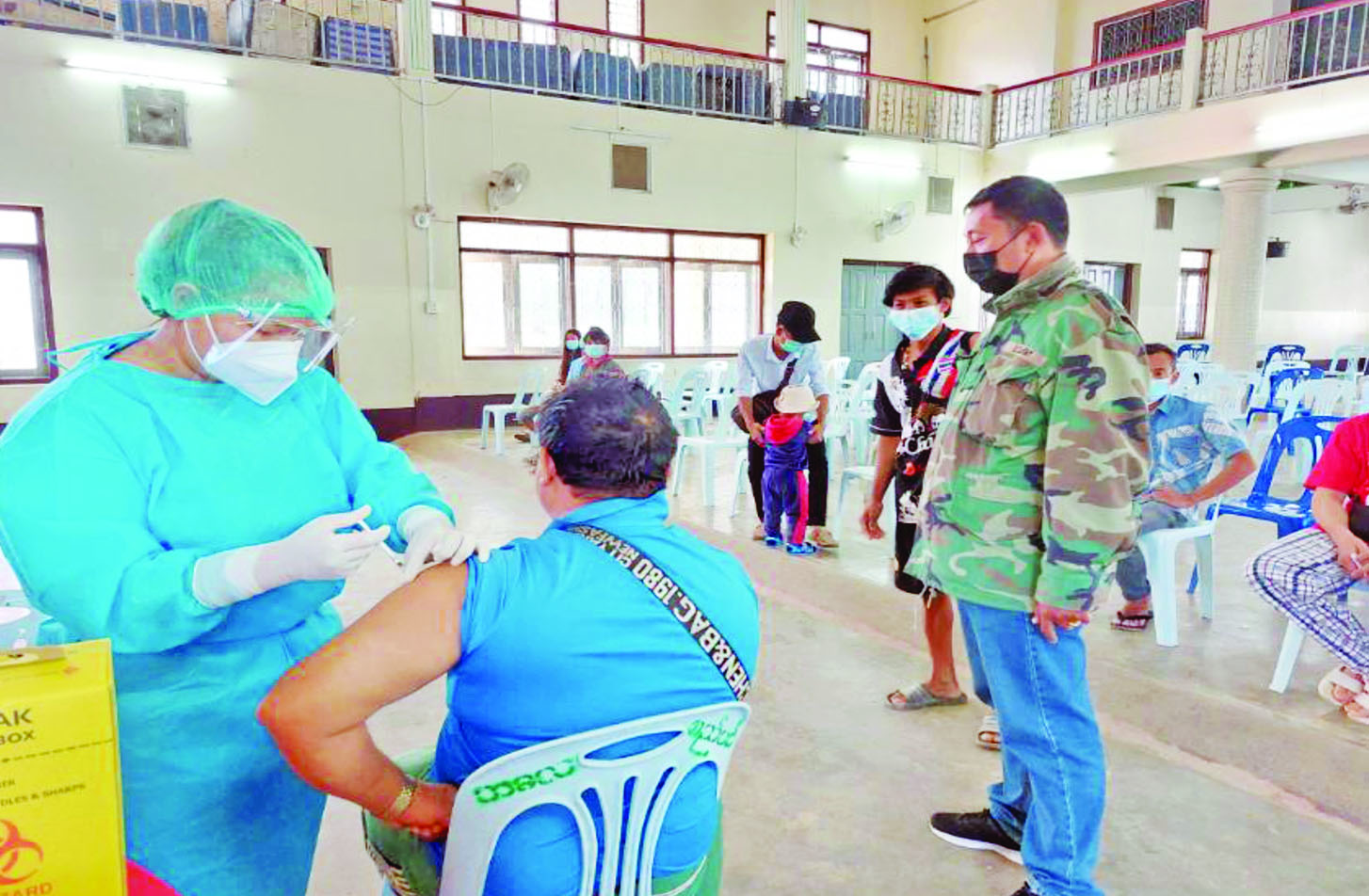 ထိုသို့ဆောင်ရွက်လျက်ရှိရာ ယနေ့တွင် ရှမ်း ပြည်နယ်(အရှေ့ပိုင်း)အတွင်းရှိ မြို့နယ် လေးမြို့နယ် ၌ ဒေသခံပြည်သူ ၇၇၇ ဦး၊ ဧရာဝတီတိုင်းဒေသကြီး အတွင်းရှိ မြို့နယ် ၂၆ မြို့နယ်တို့၌ ဒေသခံပြည်သူ ၂၆၄၈၆ ဦး၊ စစ်ကိုင်းတိုင်းဒေသကြီး ခန္တီးမြို့၌ ဒေသခံ ပြည်သူ ၃၀၀ နှင့် မန္တလေးတိုင်းဒေသကြီးအတွင်းရှိ ခရိုင် ခုနစ်ခုတို့၌ ဒေသခံပြည်သူ ၈၄၅၀ တို့ကို တပ်မတော်မှ ဆေးအဖွဲ့များက ပြည်သူ့ဆေးရုံများမှ ဆရာဝန်များ၊ သက်ဆိုင်ရာ ကျန်းမာရေးဝန်ထမ်းများ၊ စေတနာ့ဝန်ထမ်းများနှင့် ပူးပေါင်း၍ ကိုဗစ်-၁၉ ရောဂါကာကွယ်ဆေးထိုးနှံပေးသည်။