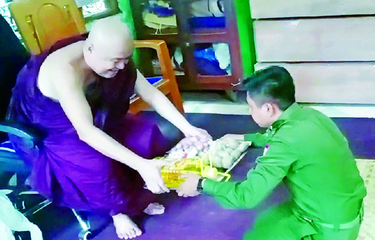 တပ်မတော်(ကြည်း၊ ရေ၊ လေ)မိသားစုများနှင့် စေတနာရှင်ပြည်သူများက ဆွမ်းဆန်တော်၊ ဆီ၊ ဆား၊ ပဲ အမယ်လေးမျိုးနှင့် နဝကမ္မအလှူငွေများ လှူဒါန်း