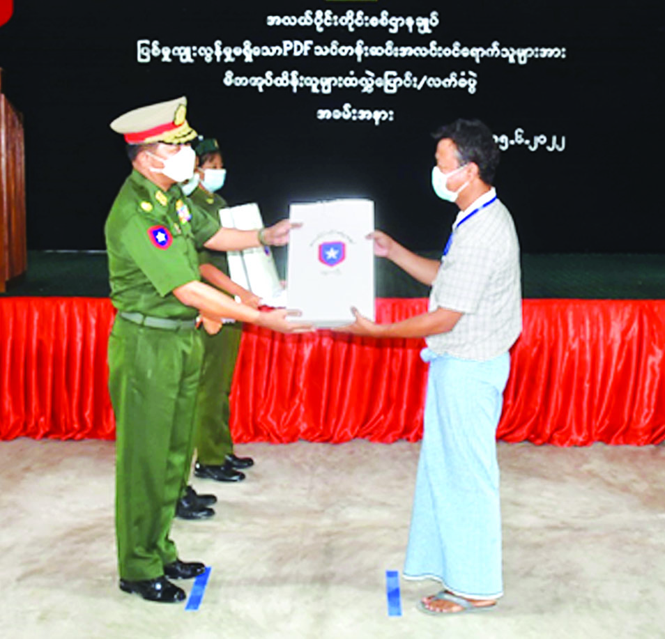 PDF အပါအဝင် အဖွဲ့အစည်းအမျိုးမျိုးတို့အနေဖြင့် နိုင်ငံတော်၏ ရှေ့လုပ်ငန်းစဉ်များတွင် ပါဝင်ပူးပေါင်းဆောင်ရွက်နိုင်ရေး သတ်မှတ် စည်းကမ်းချက်များနှင့်အညီ ဥပဒေဘောင်အတွင်းသို့ လက်နက်အပ်နှံပြီး ပြည်သူ့ဘဝသို့ပြန်လည်ဝင်ရောက်ခြင်း ပြုမည်ဆိုပါက ကြိုဆိုလက်ခံ သွားမည်ဖြစ်ကြောင်း နိုင်ငံတော်အစိုးရက ထုတ်ပြန်ထားပြီးဖြစ်ရာ ပြစ်မှုကျူးလွန်ခဲ့ခြင်းမရှိသော PDF အဖွဲ့ဝင်များက တိုင်းဒေသကြီးနှင့် ပြည်နယ်အသီးသီး၌ ဥပဒေဘောင်အတွင်း ပြန်လည်ဝင်ရောက်လျက် ရှိကြသဖြင့် သက်ဆိုင်ရာ တာဝန်ရှိသူများက ၎င်းတို့၏ မိဘအုပ်ထိန်းသူ များထံသို့ လွှဲပြောင်းအပ်နှံပေးလျက်ရှိကြောင်း သိရသည်။