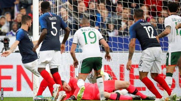 အမှတ်ပေးဇယားရပ်တည်မှုအရ နိုင်ပွဲရရှိရန် လိုအပ်နေသည့် အိုင်ယာလန်အသင်းမှာ ခြေစွမ်းပြသနိုင်ခြင်းမရှိဘဲ ပြင်သစ်အသင်း၏ ဖိအားပေးတိုက်စစ်ဆင်မှုများကိုသာ ခုခံကာကွယ်ခဲ့ရသည်။