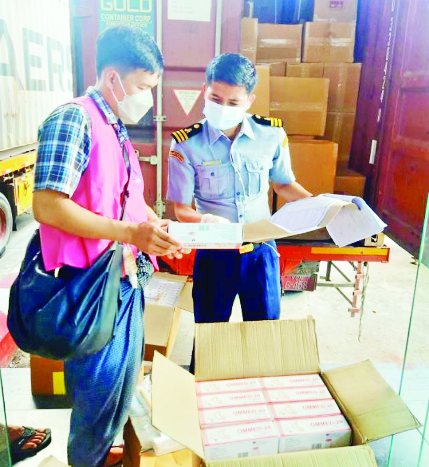 အကောက်ခွန်ဦးစီးဌာနအနေဖြင့် ကိုဗစ်-၁၉ ရောဂါ ကာကွယ်၊ ထိန်းချုပ်၊ ကုသရေးပစ္စည်းများကို နယ်စပ်ဂိတ်အသီးသီးမှ နေ့စဉ် လွယ်ကူချောမွေ့စွာ စစ်ဆေးထုတ်ပေးလျက်ရှိရာ နိုဝင်ဘာ ၂၈ ရက်၌ နယ်စပ်(မြဝတီ၊ ချင်းရွှေဟော်)တွင် ကုမ္ပဏီ လေးခုတို့မှ Glucose and Sodium Chloride Injection အခု ၇၁၉၇၀၊ Disposable Syringe အခု၄၈၀၀၊ Disposable Face Mask ၄၅၂၂၀ Kg၊ Liquid Oxygen ၁၄၆၅၄ m3 တို့ကို ထုတ်ပေးခဲ့ကြောင်း သတင်းရရှိသည်။