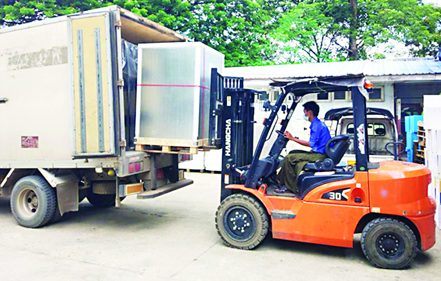 ကိုဗစ်-၁၉ ရောဂါ ကာကွယ်ဆေး Sinopharm များကို သတ်မှတ် အအေးလမ်းကြောင်း စံချိန်စံညွှန်း များအတိုင်း တပ်မတော်လေယာဉ်   များ၊    မော်တော်ယာဉ်များဖြင့် ပို့ဆောင်ပေးလျက်ရှိသည်။