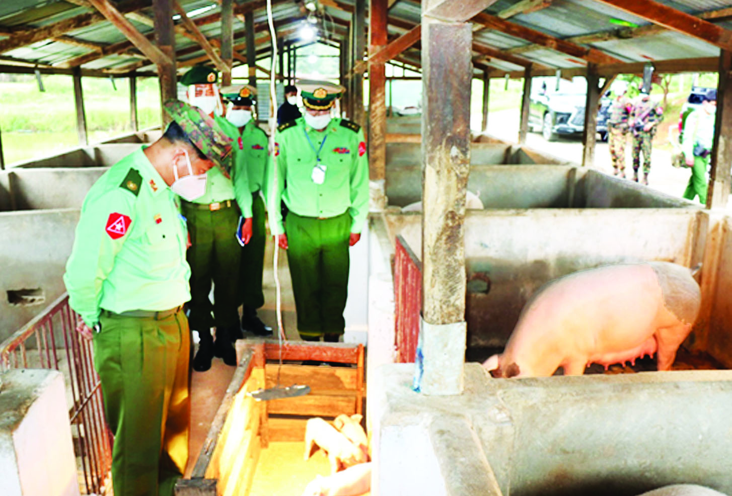 ကိုဗစ်-၁၉ ရောဂါ တတိယလှိုင်း ဖြစ်ပွားမှု ကြောင့် ရောဂါကာကွယ်၊ ထိန်းချုပ်၊ ကုသရေး လုပ်ငန်းများ ဆောင်ရွက်နေချိန်တွင် ဒေသ တွင်း စားနပ်ရိက္ခာဖူလုံရေးနှင့် ပြည်သူ များ၏ စားသောက်ရေးကို အထောက်အကူ ဖြစ်စေရန်အတွက် ယနေ့တွင် တြိဂံဒေသ တိုင်းစစ်ဌာနချုပ် တိုင်းမှူး ဗိုလ်မှူးချုပ် မျိုးမင်းထွန်းနှင့် အဖွဲ့ဝင်များသည် ရှမ်းပြည် နယ် အရှေ့ပိုင်း ကျိုင်းတုံတပ်နယ်ရှိ တပ်ရင်း/တပ်ဖွဲ့များ၏ စိုက်ပျိုးရေးလုပ်ငန်း၊ မွေးမြူရေးလုပ်ငန်းများကို သွားရောက် ကြည့်ရှုသည်။