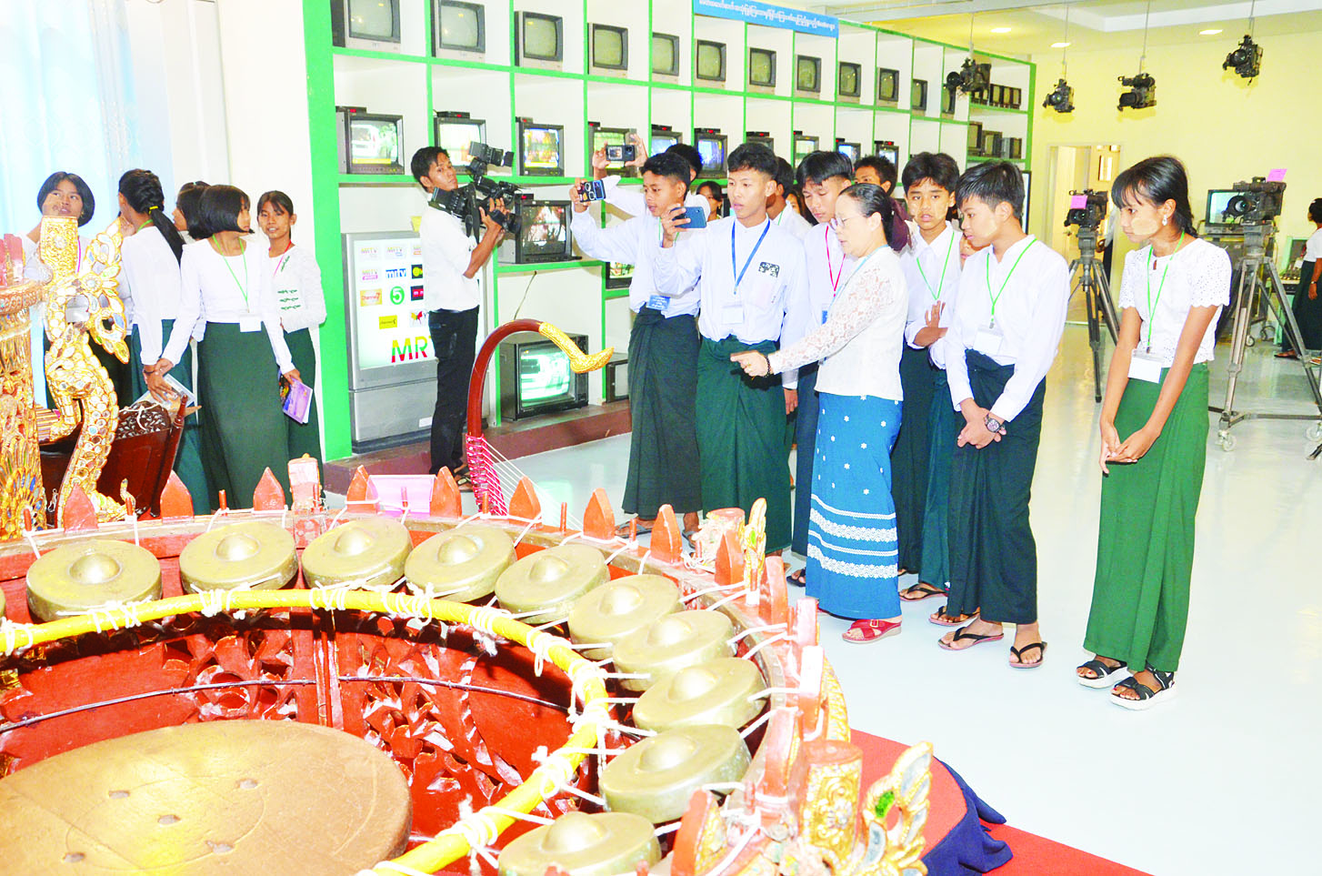 ထို့နောက် လေ့လာရေးအဖွဲ့ သည်   မြန်မာ့အသံနှင့်   ရုပ်မြင် သံကြား     စိန်ရတုပြတိုက်တွင် ခေတ်အဆက်ဆက်      ရုပ်သံ ထုတ်လွှင့်ရာ၌   အသုံးပြုခဲ့သည့် စက်ပစ္စည်းများ၊     တိုက်ရိုက် ထုတ်လွှင့်ရေး  မော်တော်ယာဉ် များ၊       သတင်းတင်ဆက်မှု ပုံစံငယ်များ၊ ခေတ်အဆက်ဆက်  ထုတ်လွှင့်တင်ဆက်ခဲ့သည့် အစီ အစဉ်များတွင် ပါဝင်ဆောင်ရွက် ခဲ့သူများ၏ မှတ်တမ်းဓာတ်ပုံများ၊  တူရိယာပစ္စည်းများ၊      သတင်း စတူဒီယိုခန်းများ၊       ရေဒီယို အစီအစဉ်တွင်  အသုံးပြုခဲ့သည့် ခေတ်ဟောင်း ဓာတ်ပြားများနှင့် အခြားအသုံးအဆောင်ပစ္စည်းများ စသည့် စုစုပေါင်းပြခန်း  ၄၀  တွင် ခင်းကျင်း   ပြသထားရှိမှုများအား ကြည့်ရှုလေ့လာကြပြီး မေးမြန်းမှု များအပေါ်    တာဝန်ရှိသူများက ရှင်းလင်းဖြေကြားခြင်း၊ မှတ်သား ဖွယ်ရာ အဖြေလွှာများ၌ ဖြည့်စွက် မှုများအပေါ် စိစစ်၍ ဆုချီးမြှင့် ခြင်းများ ဆောင်ရွက်ကြသည်။