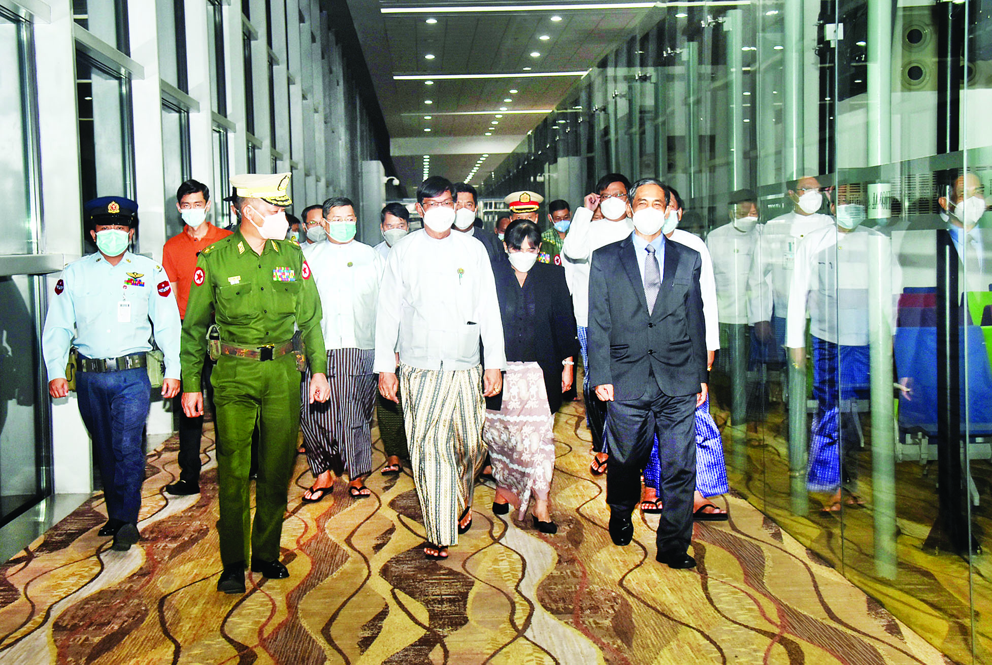 ပြည်ထောင်စုဝန်ကြီး ဦးကိုကိုလှိုင်နှင့် ဒေါက်တာ သီတာဦးတို့ ဦးဆောင်သော မြန်မာ ကိုယ်စားလှယ်အဖွဲ့အား ရန်ကုန်တိုင်းဒေသကြီး ဝန်ကြီးချုပ် ဦးစိုးသိန်း၊ ရန်ကုန်တိုင်းစစ်ဌာနချုပ် တိုင်းမှူး ဗိုလ်ချုပ် ညွန့်ဝင်းဆွေ၊ နိုင်ငံခြားရေးဝန်ကြီး ဌာန ဒုတိယဝန်ကြီး ဦးကျော်မျိုးထွဋ်၊ တိုင်းဒေသကြီး ဝန်ကြီးများနှင့် ဌာနဆိုင်ရာ တာဝန်ရှိသူများက ရန်ကုန်အပြည်ပြည်ဆိုင်ရာလေဆိပ်၌ ကြိုဆို နှုတ်ဆက်ကြသည်။
