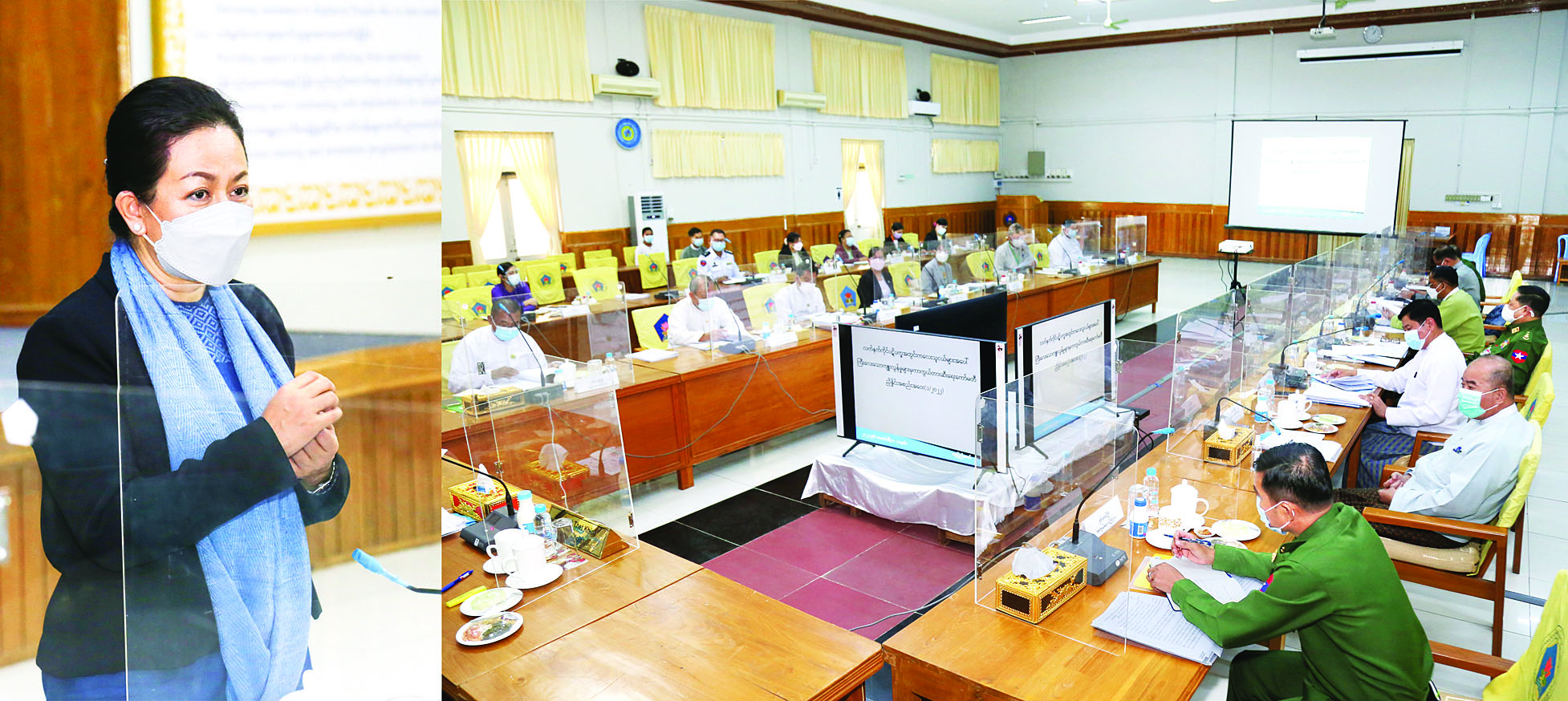 လက်နက်ကိုင်ပဋိပက္ခအတွင်း ကလေးသူငယ် များအပေါ် ကြီးလေးသောကျူးလွန်မှုများမှ ကာကွယ် တားဆီးရေးကော်မတီ ညှိနှိုင်းအစည်းအဝေး၌ လက်နက်ကိုင်ပဋိပက္ခအတွင်း ကလေးသူငယ်များ အပေါ် သေကျေထိခိုက်ဒဏ်ရာရစေမှုနှင့် လိင်ပိုင်း ဆိုင်ရာ အကြမ်းဖက်ကျူးလွန်မှုများမှ ကာကွယ် တားဆီးနိုင်ရေး အမျိုးသားအဆင့် လုပ်ငန်းစီမံချက် (၂၀၂၂-၂၀၂၃)ကို ဆက်လက်အတည်ပြု အကောင် အထည်ဖော်ဆောင်ရွက်နိုင် ရန် ကော်မတီဝင်များက ဝိုင်းဝန်းအကြံပြုဆွေးနွေးခဲ့ကြပြီး လက်နက်ကိုင် ပဋိပက္ခအတွင်း ကလေးသူငယ်များအပေါ် ကြီးလေး သော ကျူးလွန်မှုများမှ ကာကွယ်တားဆီးရေး ကော်မတီ၏ ထုတ်ပြန်ကြေညာချက် ထုတ်ပြန်သွား မည့် အခြေအနေများကို ညှိနှိုင်းဆွေးနွေးခဲ့ကြသည်။