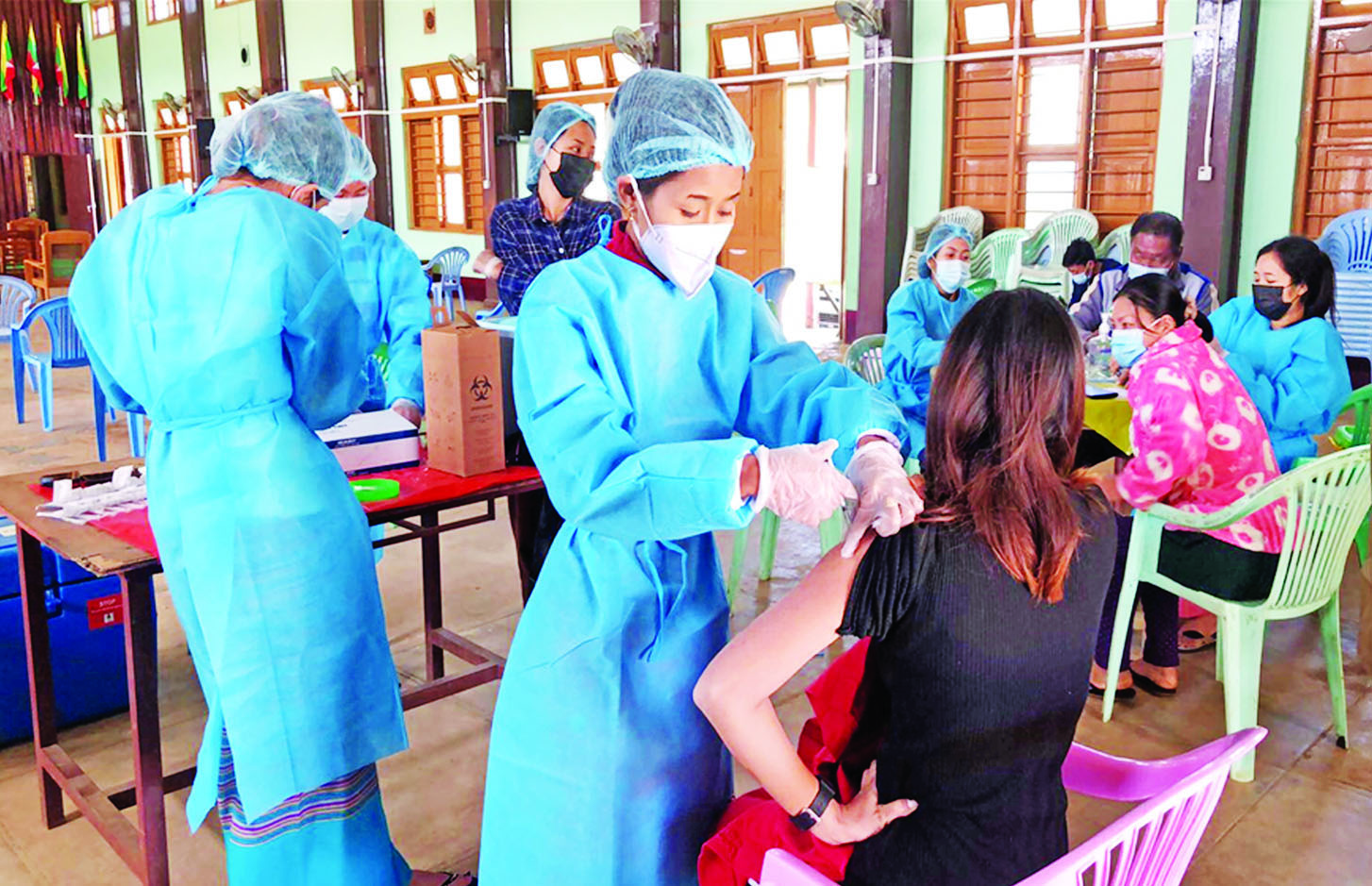 တိုင်းဒေသကြီးနှင့် ပြည်နယ် အသီးသီးတို့၌ သံဃာတော်များ၊ သာသနာ့နွယ်ဝင် သီလရှင်များ၊ ဘာသာရေး ခေါင်းဆောင်များ အပါအဝင် လူမျိုးမရွေး ဘာသာ မရွေး အသက် ၄၀ အထက် ဒေသခံပြည်သူများ၊ အကျဉ်းသား အကျဉ်းသူများ၊ မသန်စွမ်းသူများ၊ တိုင်းရင်းသားလက်နက်ကိုင်အဖွဲ့ များ၊ နာတာရှည်ရောဂါအခံရှိသူ များ၊ ကယ်ဆယ်ရေးစခန်းများ၊ ယာယီတိုက်ပွဲရှောင် စခန်းများ အတွင်းရှိ ပြည်သူများ၊ အသက် (၁၂)နှစ်အထက် အခြေခံပညာ အလယ်တန်းနှင့် အထက်တန်း အဆင့် ကျောင်းသား ကျောင်းသူ များစသည့် ဦးတည်အုပ်စုများ သတ်မှတ်၍ တပ်မတော်မှ ဆေးအဖွဲ့များ၊ ပြည်သူ့ဆေးရုံများ မှ ဆရာဝန်များ၊ သူနာပြုများ၊ ကျန်းမာရေး ဝန်ထမ်းများနှင့် စေတနာ့ဝန်ထမ်းများက ကာကွယ် ဆေးထိုးခြင်း လုပ်ငန်းများကို အင်တိုက်အားတိုက် ဆောင်ရွက် ပေးလျက်ရှိသည်။