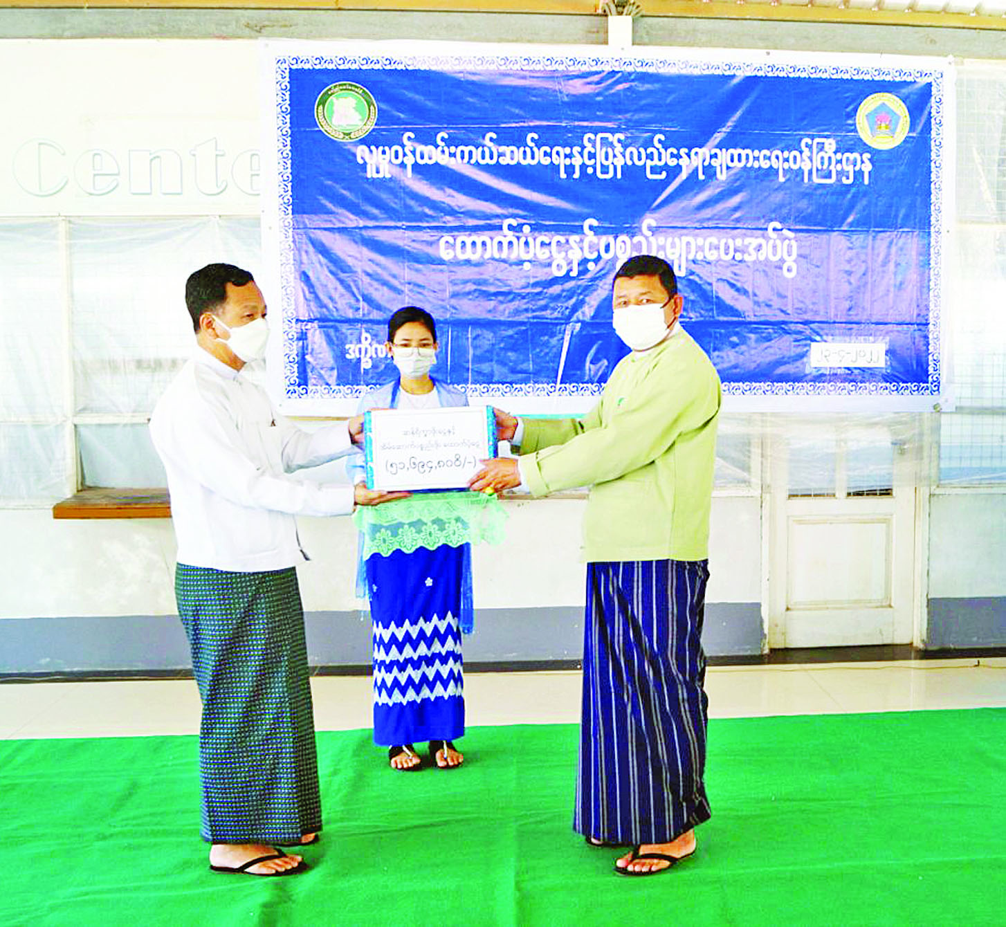 ယင်းနောက်   နေပြည်တော် ကောင်စီဥက္ကဋ္ဌက  ဒက္ခိဏခရိုင် အတွင်းရှိ လေဘေးသင့် ပြည်သူ များအတွက်    ထောက်ပံ့ငွေများ ပေးအပ်ရာ    ဒက္ခိဏခရိုင်   စီမံ အုပ်ချုပ်ရေးအဖွဲ့ဥက္ကဋ္ဌက လက်ခံ ရယူသည်။