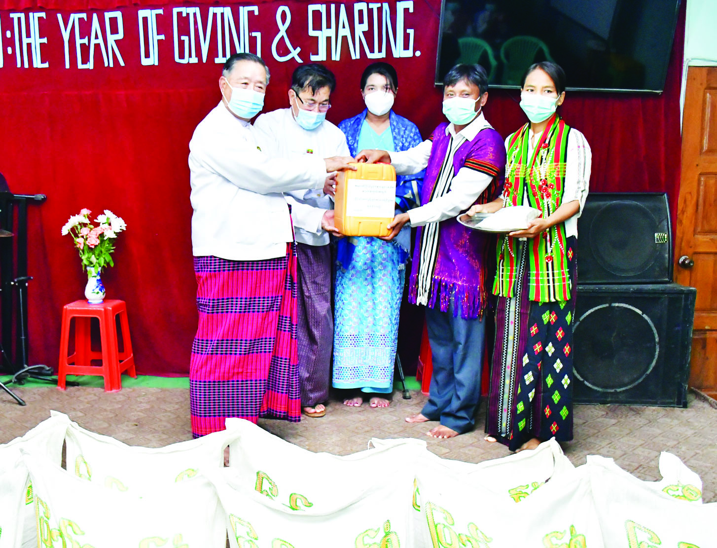 ယင်းနောက် ပြည်ထောင်စု ဝန်ကြီးနှင့် ဒုတိယဝန်ကြီးတို့က ဆန်၊ ဆီနှင့် ငွေကျပ် လေးသိန်း တို့ကို ထောက်ပံ့လှူဒါန်းရာ သိက္ခာတော်ရဆရာတော် ဦးလင်း ထန်က လက်ခံရယူပြီး အနာဂတ် ကြယ်ပွင့်ကလေးများ ပရဟိတ ဂေဟာမှ သားငယ် သမီးငယ်များ က အကများနှင့် သီချင်းများဖြင့် ကပြသီဆိုဖျော်ဖြေခဲ့ကာ သိက္ခာ တော်ရဆရာတော်က ကျေးဇူးတင် စကား ပြောကြားသည်။