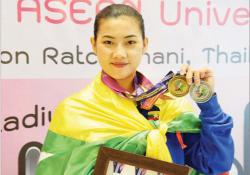 အကြိမ် (၂၀)မြောက် အာဆီယံတက္ကသိုလ်များအားကစားပြိုင်ပွဲ တက္ကသိုလ်ဝူရှူးအားကစားအဖွဲ့မှ မအေးသစ္စာမြင့် ရွှေတံဆိပ်ဆွတ်ခူး