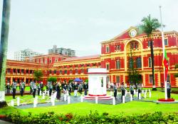 (၇၅)နှစ်မြောက် အာဇာနည်နေ့ ဝမ်းနည်းခြင်း အထိမ်းအမှတ် အဖြစ် ရန်ကုန်မြို့ဝန်ကြီးများရုံး (ယခင်အတွင်းဝန်ရုံး)၌ နိုင်ငံတော် အလံအား …