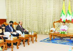 ပြည်ထောင်စု ရွေးကောက်ပွဲ ကော်မရှင်ဥက္ကဋ္ဌ ဦးသိန်းစိုးသည် မြန်မာနိုင်ငံဆိုင်ရာ အိန္ဒိယနိုင်ငံ သံအမတ်ကြီး H. E. Mr…