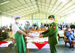 နိုင်ငံတော် စီမံအုပ်ချုပ်ရေး ကောင်စီဥက္ကဋ္ဌ နိုင်ငံတော်ဝန်ကြီးချုပ် ဗိုလ်ချုပ်မှူးကြီး မင်းအောင်လှိုင် နှင့် အဖွဲ့ဝင်များသည် သီလဓမ္မ ကုန်းသာ …