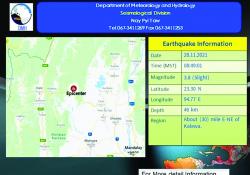 နိုဝင်ဘာ ၂၈ ရက် နံနက် ၈ နာရီ၊ ၄၉ မိနစ်၊ ၀၁ စက္ကန့်အချိန်တွင် ကန့်ဘလူ မြေငလျင်စခန်းမှ အနောက်-အနောက်မြောက်ဘက် ၄၈ မိုင်ခန့် ကွာဝေးသော …