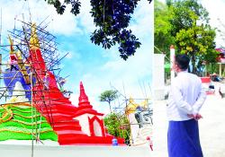 ကချင်ပြည်နယ် ပူတာအိုခရိုင် မချမ်းဘော့မြို့ ကောင်းမှုလုံ စေတီတော်မြတ်ကြီး၌ ဆီမီးများ ထွန်းညှိခြင်း၊ ကောင်းမှုလုံ တောင်ဘက်မုခ် …