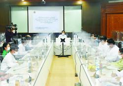 နေပြည်တော်ကောင်စီ ဥက္ကဋ္ဌ ဒေါက်တာမောင်မောင်နိုင်သည် နေပြည်တော်ကောင်စီ အဖွဲ့ဝင် များဖြစ်ကြသည့် ဗိုလ်မှူးကြီး မင်းနောင်၊ ဦးဇေယျာလင်း၊…