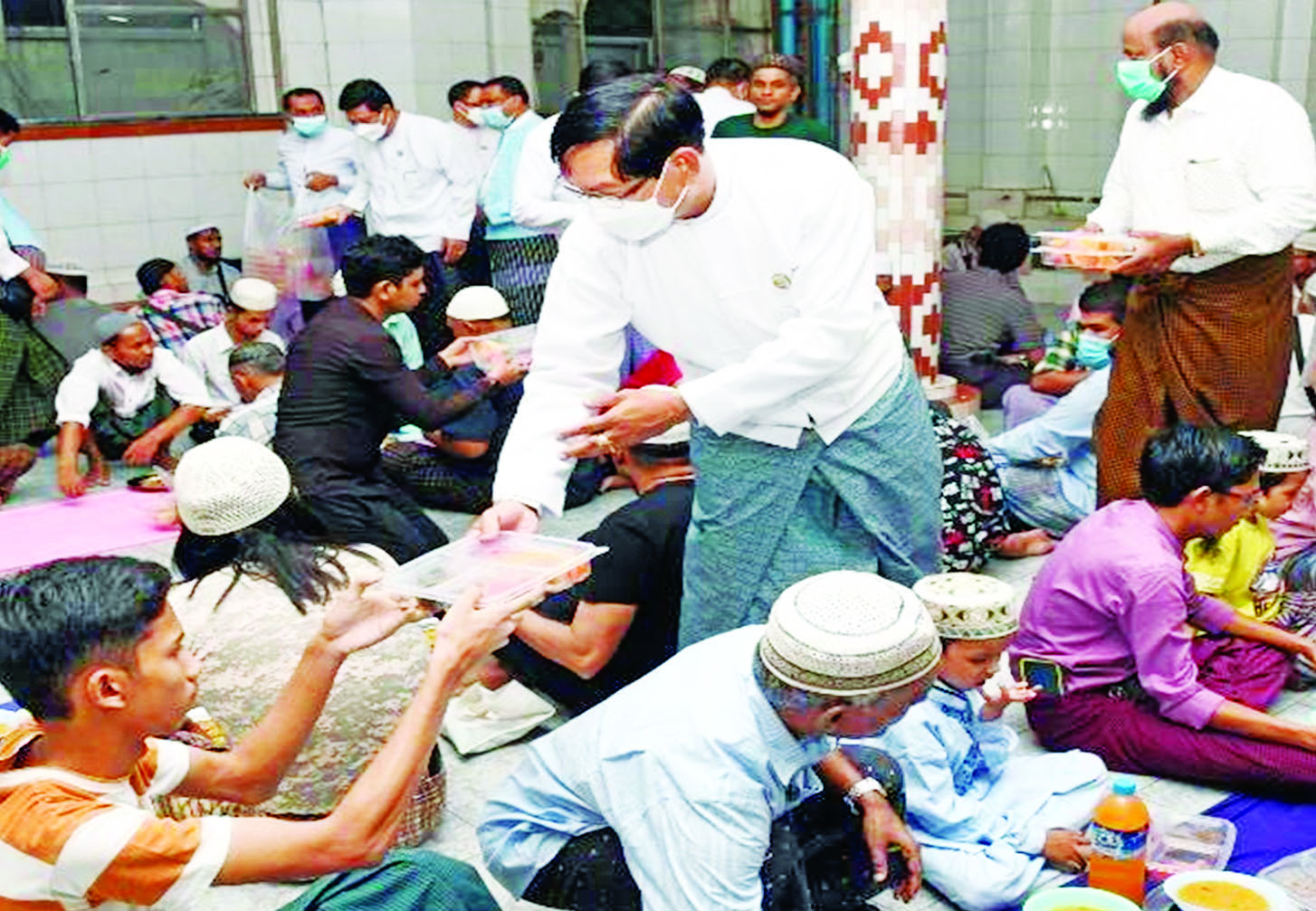 ရန်ကုန်တိုင်းဒေသကြီးအတွင်းရှိ အစ္စလာမ် ဘာသာဝင်များ၏ ရာမဒန်လမြတ်ကာလတွင် ဥပုသ်ဝင်ရောက်ကြသူများအတွက် စားသောက် ဖွယ်ရာများကို ရန်ကုန်တိုင်းဒေသကြီး ဝန်ကြီးချုပ် ဦးစိုးသိန်း၊ ရန်ကုန်တိုင်းစစ်ဌာနချုပ် တိုင်းမှူး ဗိုလ်ချုပ် ညွန့်ဝင်းဆွေနှင့် တာဝန်ရှိသူများက သွားရောက်ပေးအပ်လှူဒါန်းလျက်ရှိသည်။
