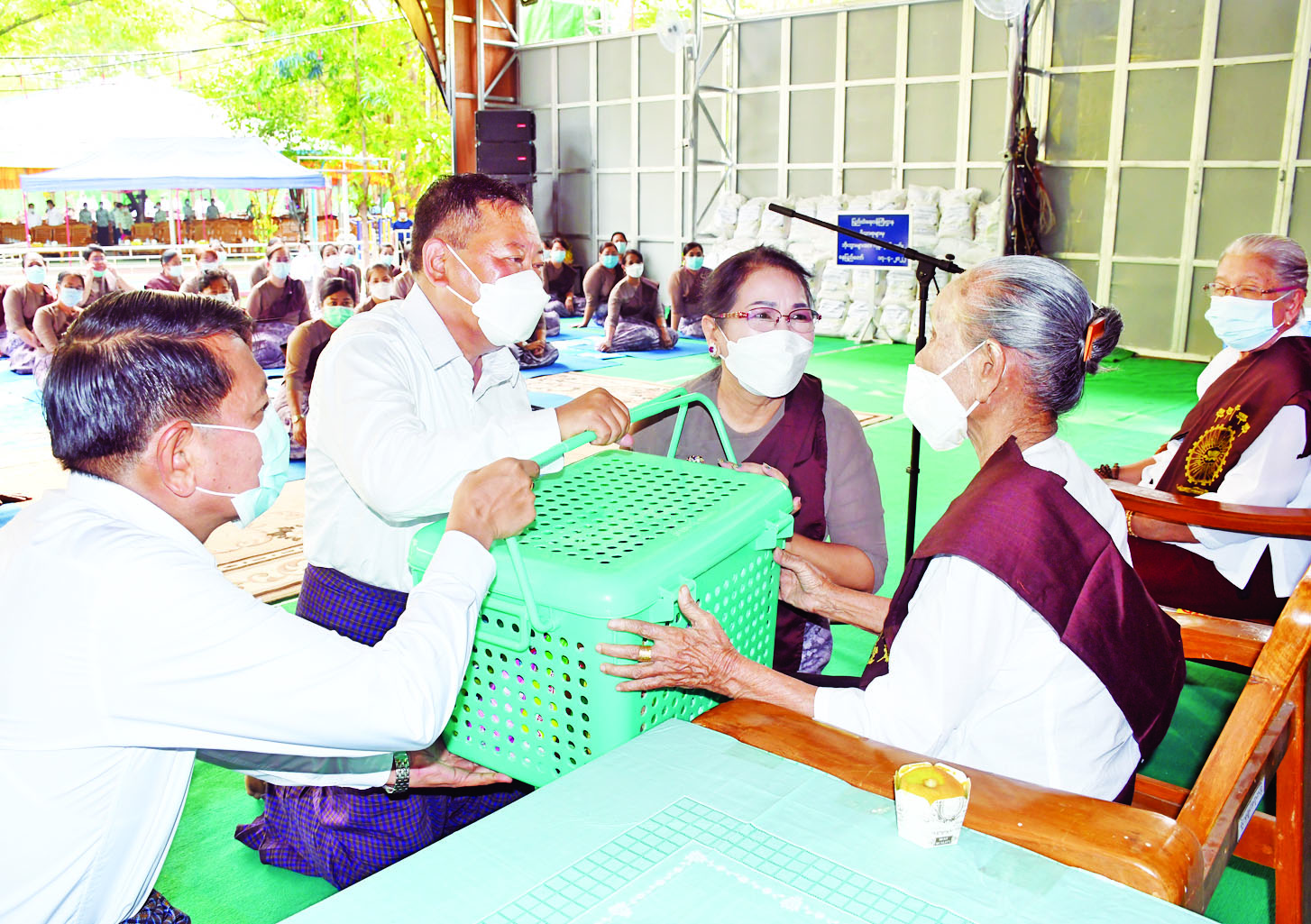 ဆက်လက်၍ ပြည်ထဲရေးဝန်ကြီးဌာနမိသားစု၏ မြန်မာနှစ်ဆန်း ၁ ရက်နေ့ သက်ကြီးဘိုးဘွားများ ကန်တော့ပွဲအခမ်းအနားကို နံနက် ၈ နာရီတွင် နေပြည်တော် ရုံးအမှတ်(၃၈)၌ ကျင်းပရာ အခမ်းအနား သို့ နိုင်ငံတော်စီမံအုပ်ချုပ်ရေးကောင်စီအဖွဲ့ဝင်၊ ပြည်ထဲရေးဝန်ကြီးဌာန ပြည်ထောင်စုဝန်ကြီးနှင့်ဇနီး၊ ဒုတိယဝန်ကြီးများဖြစ်ကြသည့် ဒုတိယဗိုလ်ချုပ်ကြီး သန်းလှိုင်၊ ဗိုလ်ချုပ် စိုးတင့်နိုင်နှင့်ဇနီး၊ အမြဲတမ်း အတွင်းဝန်နှင့်ဇနီး၊ တပ်ဖွဲ့/ ဦးစီးဌာနများမှ ညွှန်ကြား ရေးမှူးချုပ်များနှင့် ဇနီးများ၊ တာဝန်ရှိသူများ၊ ဝန်ထမ်းနှင့် ဝန်ထမ်းမိသားစုဝင်များ တက်ရောက် ကြပြီး ပြည်ထဲရေးဝန်ကြီးဌာန ဝန်ထမ်းများ၏ အတူနေမိသားစုဝင် အသက် ၈၀ နှင့်အထက် အဘိုး အဘွား ၁၁၂ ဦးတို့ကို အသုံးအဆောင်ပစ္စည်းများ၊ ဆေးဝါးပစ္စည်းများနှင့် ငွေသားများအပါအဝင် စုစုပေါင်း တန်ဖိုးငွေကျပ် ၆၈၃၇၆၀၀ ကို တက်ရောက် လာသည့် တာဝန်ရှိသူများနှင့် ၎င်းတို့၏ဇနီးများက ပေးအပ်လှူဒါန်းကြပြီး ဂါရဝပြုကန်တော့ခဲ့ကြောင်း သိရသည်။