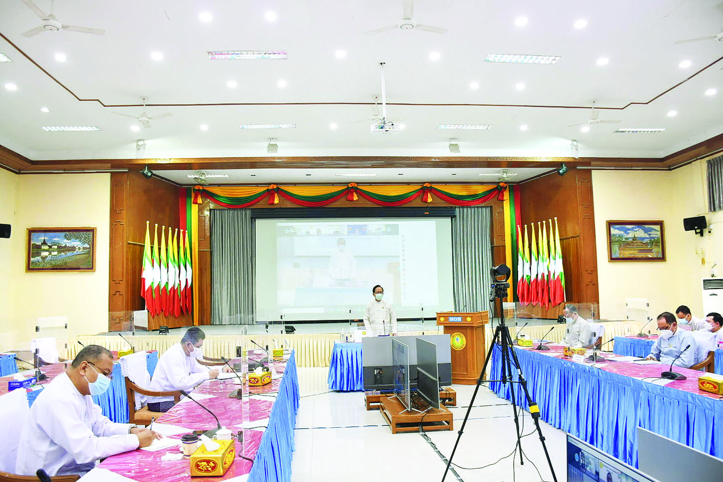 ကျန်းမာရေးဝန်ကြီးဌာန ပြည်ထောင်စုဝန်ကြီး ဒေါက်တာသက်ခိုင်ဝင်းသည် ယနေ့မွန်းလွဲပိုင်းတွင် ညွှန်ကြားရေးမှူးချုပ်နှင့် တာဝန်ရှိပုဂ္ဂိုလ်များ၊ ဆေးတက္ကသိုလ်များနှင့် ဆေးပညာနှီးနွှယ်တက္ကသိုလ်များမှ ပါမောက္ခချုပ်များနှင့် ကျန်းမာရေးဝန်ကြီးဌာန Covid-19 Central Command Centre အစည်းအဝေးခန်းမ၌ တွေ့ဆုံဆွေးနွေးသည်။