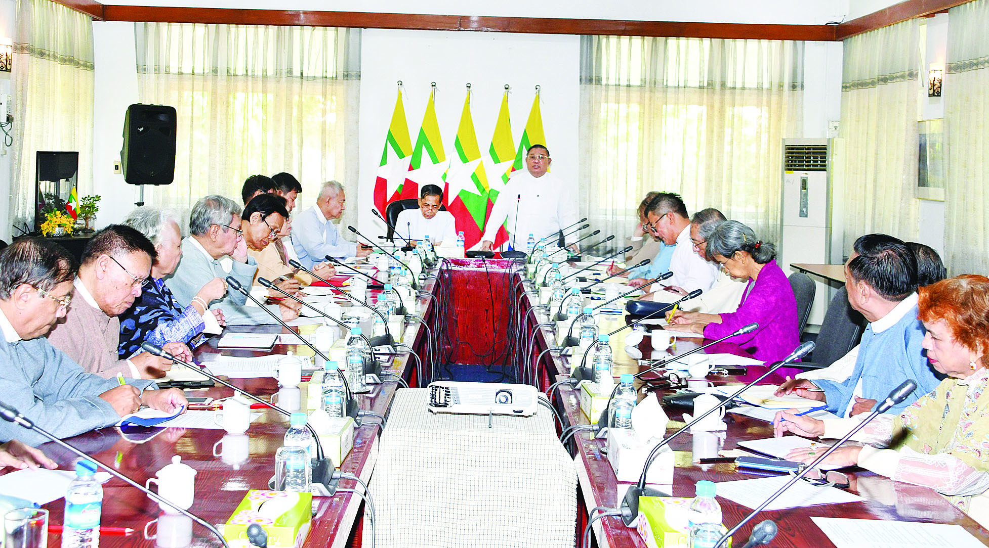 ပြည်ထောင်စုဝန်ကြီးနှင့် အဖွဲ့ သည် ယနေ့နံနက်ပိုင်းတွင် ဒဂုံမြို့ သစ် (မြောက်ပိုင်း)ရှိ ပညာရေးနှင့် လေ့ကျင့်ရေးဦးစီးဌာန ကွပ်ကဲမှု အောက် ဗဟိုလေ့ကျင့်ရေးကျောင်း သို့ ရောက်ရှိပြီး နိပွန်ဖောင်ဒေးရှင်း နှင့် ပူးပေါင်းဖွင့်လှစ်ထားသည့် ငြိမ်းချမ်းရေး၊ နယ်စပ်ဒေသနှင့် တိုင်းရင်းသားလူမျိုးများ ဖွံ့ဖြိုး တိုးတက်ရေး လုပ်ငန်းစဉ်ဆိုင်ရာ ခေါင်းဆောင်မှုသင်တန်း အမှတ် စဉ်(၅)တွင် တက်ရောက်နေကြ သည့် သင်တန်းသား၊ သင်တန်းသူ များ၏ လေ့ကျင့်သင်ကြားနေမှု၊ Japan Myanmar Association (JMA)နှင့် ပူးပေါင်းဖွင့်လှစ်ထား သည့် သက်ကြီးရွယ်အိုစောင့်ရှောက် ရေး သင်တန်းအမှတ်စဉ် (၁) တွင် တက်ရောက်နေကြသည့် သင်တန်း သူများ၏ လေ့ကျင့်သင်ကြားနေမှု များကို ကြည့်ရှုစစ်ဆေးပြီး လိုအပ် သည်များ မှာကြားဖြည့်ဆည်း ဆောင်ရွက်ပေးသည်။