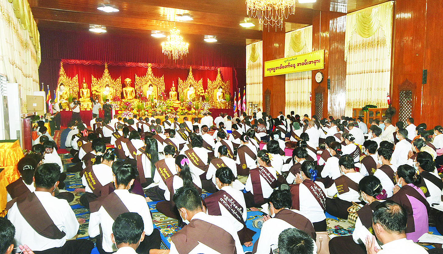 ယင်းနောက်   ဝါတွင်းကာလ  သီလခံယူပွဲကို ကျင်းပရာ  ရွှေတိဂုံစေတီတော်  ဘဏ္ဍာတော်ထိန်း ဂေါပကအဖွဲ့၏ ဩဝါဒါစရိယ ဘဒ္ဒန္တဇာဂရ အဂ္ဂမဟာ ပဏ္ဍိတ၊   အဂ္ဂမဟာဂန္ထဝါစကပဏ္ဍိတ   မြသိန်းတန် ကျောင်းတိုက်ဆရာတော်ထံမှ  ဂေါပကအဖွဲ့ဝင်များ၊ ဘာသာရေးဝတ်အသင်းအဖွဲ့များနှင့်  ဘုရားဖူးလာရဟန်းရှင်လူပြည်သူများက   ပါဝင်ကုသိုလ်ပြုကြသည်။