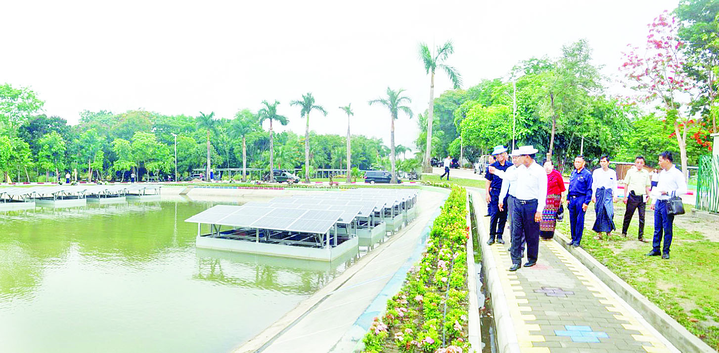 ထို့နောက် ရန်ကုန်အနောက် ပိုင်းတက္ကသိုလ် ပင်မဆောင်ရှေ့ ရေကန်အတွင်းရှိ Solar Panel များကို ဘေးတစ်ဖက်တစ်ချက်စီ သို့ ရွှေ့ပြောင်းပြီးစီးမှု ၊ ပန်းဥယျာဉ်နှင့် အားကစားကွင်း များ ဌာနမှ ရေကန်ပတ်လည် စိမ်းလန်းစိုပြည်စေရေး ဆောင် ရွက်ထားရှိမှု၊ အင်ဂျင်နီယာဌာန (ရေနှင့်သန့်ရှင်းမှု)မှ ရေကန် အတွင်း ရေဖြည့်သွင်းပြီး လျှပ်စစ် ဓာတ်အား ၄၆ ကီလိုဝပ် ထုတ်လုပ် နိုင်သည့် ဆိုလာလျှပ်စစ်ဓာတ်အား ပေးစနစ်ဖြင့် အလှဆင်ရေပန်း သုံးခု မောင်းနှင်နေမှု၊ ရေကန် ပတ်လည် မြေထိန်းနံရံ တည် ဆောက်ပြီးစီးမှု၊ ကန်ပေါင်တွင် လူသွားလမ်း ဆောင်ရွက်ပြီးစီး နေမှု၊ တက္ကသိုလ်အဝင်/အထွက် ယာဉ်ပတ်လမ်းအနီး မြက်ခင်းပြင် တွင် အရိပ်ရပင်များ စိုက်ပျိုးထားရှိမှုလုပ်ငန်းများကို ကြည့်ရှု စစ်ဆေးရာ တာဝန်ရှိသူများက လုပ်ငန်းဆောင်ရွက်နေမှုများကို ရှင်းလင်းတင်ပြကြပြီး တိုင်းဒေသ ကြီး ဝန်ကြီးချုပ်က လိုအပ်သည် များ မှာကြားခဲ့ကြောင်း သိရသည်။