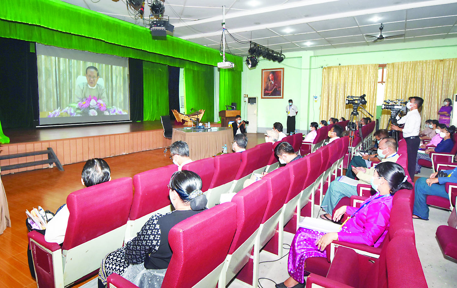 ရှေးဦးစွာ သာသနာရေးနှင့် ယဉ်ကျေးမှုဝန်ကြီး ဌာန ပြည်ထောင်စုဝန်ကြီး ဦးကိုကိုက Video Clip ဖြင့် အဖွင့်အမှာစကား ပြောကြားသည်။ (ယာပုံ)