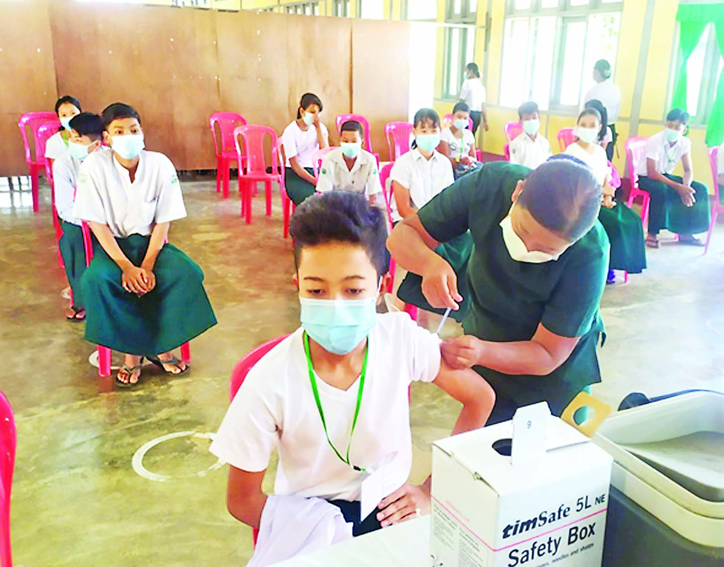 ထို့အတူ  အခြေခံပညာကျောင်းများကို ပြန်လည် ဖွင့်လှစ်နိုင်ရေး၊ ကျောင်းများဖွင့်လှစ်စဉ် ကျောင်းသား ကျောင်းသူများ ကိုဗစ်-၁၉ ရောဂါ ကူးစက်ပျံ့နှံ့မှု မရှိစေရေးနှင့် ကာကွယ်ဆေးလွှမ်းခြုံမှု အလျင်အမြန် ရရှိစေရေးတို့အတွက် ကျောင်းသား ကျောင်းသူများ ကို ကိုဗစ်-၁၉ ရောဂါကာကွယ်ဆေးများ ထိုးနှံပေး လျက်ရှိရာ   ယနေ့တွင်   မွန်ပြည်နယ်နှင့်  ကရင် ပြည်နယ်အတွင်းရှိ     မြို့နယ်    ၁၆   မြို့နယ်၌ ကျောင်းသား ကျောင်းသူ ၄၇၂၄ ဦး၊ တနင်္သာရီတိုင်း ဒေသကြီး ပလောက်မြို့နယ်နှင့် ကျွန်းစုမြို့နယ်တို့၌ ကျောင်းသား ကျောင်းသူ ၂၇၃ ဦး၊ ဧရာဝတီတိုင်းဒေသ ကြီးအတွင်းရှိ  မြို့နယ် ၂၆  မြို့နယ်တို့၌ ကျောင်းသား ကျောင်းသူ ၂၁၅၉၈ ဦး၊ ရခိုင်ပြည်နယ်အတွင်းရှိ မြို့နယ်လေးမြို့နယ်၌   ကျောင်းသား   ကျောင်းသူ ၄၁၄၄ ဦး၊  စစ်ကိုင်းတိုင်းဒေသကြီး ကလေးမြို့နယ်နှင့် တန့်ဆည်မြို့နယ်တို့၌   ကျောင်းသား  ကျောင်းသူ ၁၂၈၄ ဦးနှင့် မန္တလေးတိုင်းဒေသကြီးအတွင်းရှိ ခရိုင် ခုနစ်ခရိုင်တို့၌ ကျောင်းသား ကျောင်းသူ ၂၁၂၅၃ ဦး တို့ကို တပ်မတော်မှ ဆေးအဖွဲ့များ၊  ပြည်သူ့ဆေးရုံ များမှ ဆရာဝန်များ၊   သက်ဆိုင်ရာ  ကျန်းမာရေး ဝန်ထမ်းများ၊ စေတနာ့ဝန်ထမ်းများနှင့် ပူးပေါင်း၍ ကိုဗစ်- ၁၉ ရောဂါ ကာကွယ်ဆေးထိုးနှံပေးခြင်းများ ဆောင်ရွက်ပေးနိုင်ခဲ့သည်။