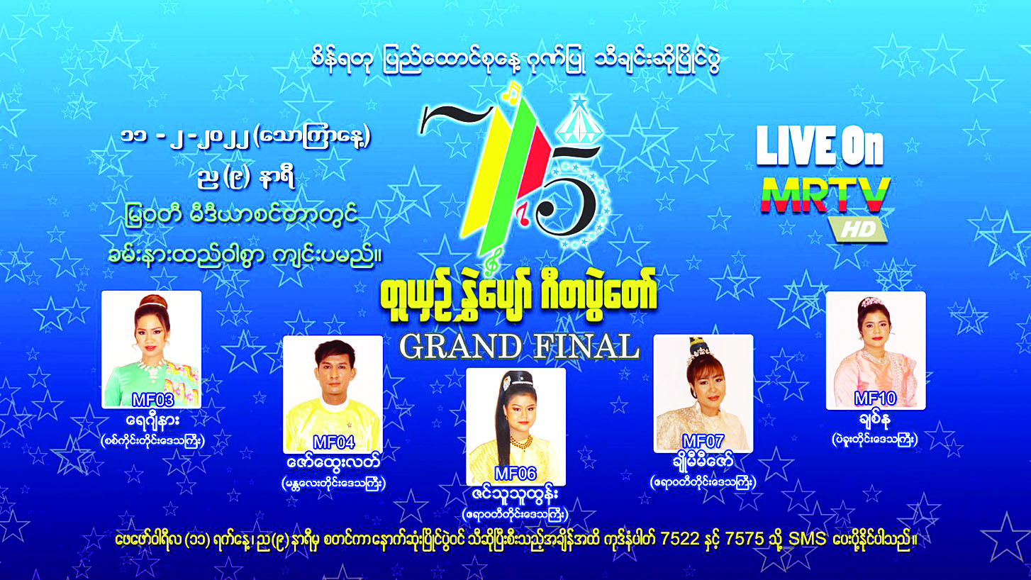 အဆိုပါ Grand Final နောက်ဆုံးပွဲစဉ်တွင် ဆုချီးမြှင့်ခြင်းအစီအစဉ်ကို တစ်ဆက်တည်း ကျင်းပမည်ဖြစ်ရာ Voting မဲရေတွက်စဉ်နှင့် အမှတ်ပေါင်းနေစဉ် နိုင်ငံကျော်တေးသံရှင်များကလည်း ပါဝင်ဖျော်ဖြေကြမည်ဖြစ်သည်။ ယင်းပြိုင်ပွဲ ကို ဒုတိယ အကြိမ်အဖြစ် ဖေဖော်ဝါရီ ၁၃ ရက် (တနင်္ဂနွေနေ့) နံနက် ၁၀ နာရီခွဲတွင်လည်း ထပ်မံ ထုတ်လွှင့်ပြသမည် ဖြစ်ကြောင်း သိရသည်။