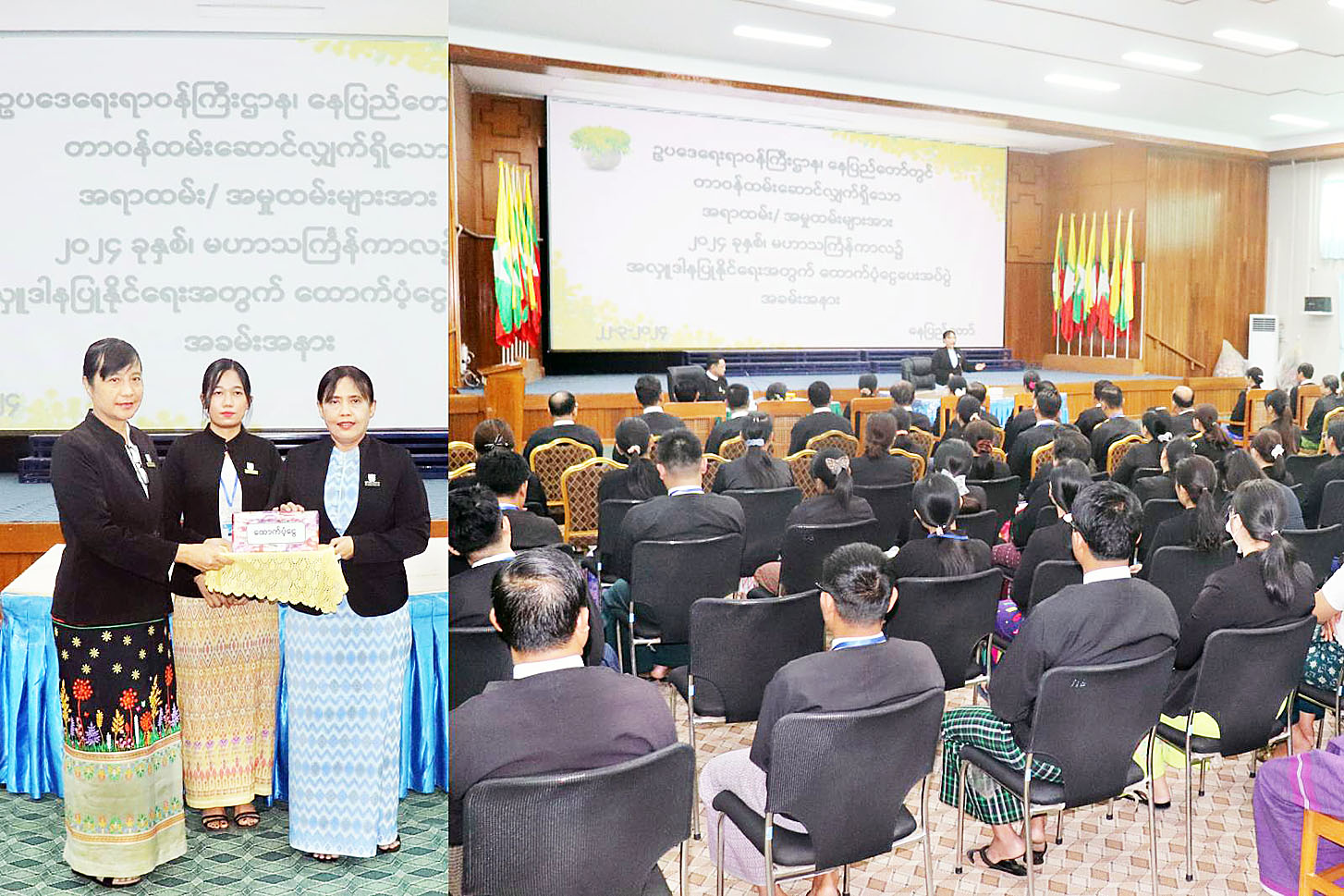 ဥပဒေရေးရာဝန်ကြီးဌာန နေပြည်တော်တွင် တာဝန် ထမ်းဆောင်လျက်ရှိကြသော အရာထမ်း၊ အမှုထမ်း များကို ၂၀၂၄ ခုနှစ် မဟာသင်္ကြန်ကာလအတွက် ထောက်ပံ့ငွေပေးအပ်ပွဲ အခမ်းအနားကို ယနေ့ မွန်းလွဲပိုင်းက မြေညီထပ်အစည်းအဝေးခန်းမ၌ ကျင်းပသည်။