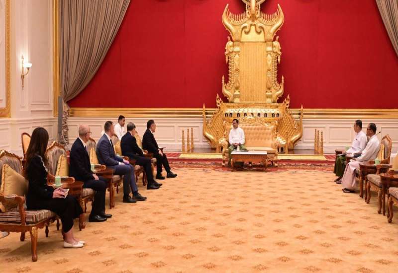 ပြည်ထောင်စုသမ္မတ မြန်မာနိုင်ငံတော်သမ္မတ ဦးမင်းအောင်လှိုင်ထံ နိုင်ငံတော်သမ္မတအဖြစ် ကတိသစ္စာပြုခြင်းအခမ်းအနားသို့ တက်ရောက်ခဲ့သည့် ရုရှားဖက်ဒရေးရှင်းနိုင်ငံ၊ ဒူးမားလွှတ်တော် ဒုတိယဥက္ကဋ္ဌ H.E. Mr. Sholban KARA-OOL ဦးဆောင်သည့် ကိုယ်စားလှယ်အဖွဲ့က ယနေ့မွန်းလွဲပိုင်းတွင် နိုင်ငံတော်သမ္မတ၏ ဧည့်ဆောင်တော်၌ လာရောက်ဂါရဝပြုတွေ့ဆုံသည်။