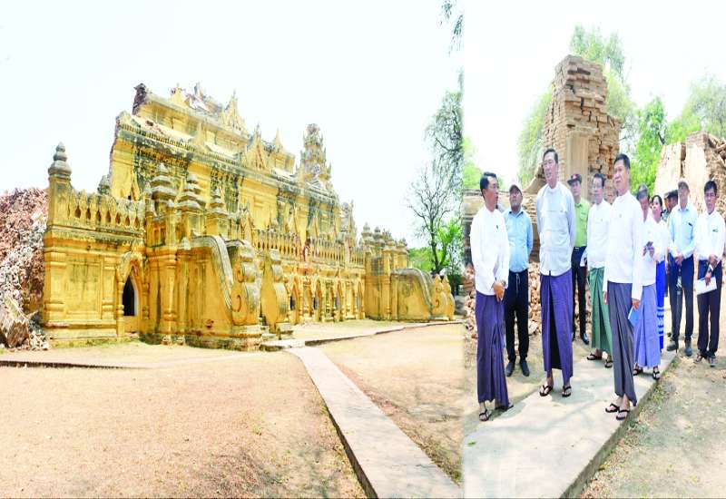 ဟိုတယ်၊ ခရီးသွားလာရေးနှင့် ယဉ်ကျေးမှုဝန်ကြီးဌာန ပြည်ထောင်စုဝန်ကြီး ဦးမောင်မြင့်သည် တာဝန်ရှိသူများနှင့်အတူ ယနေ့နံနက်ပိုင်းက ငလျင်ကြောင့် မန္တလေးဒေသရှိ အရိပ်မထွက်ဘုရား၊ ဘုရားနီဘုရား၊ မဟာမင်းထင် သစ်သားဘုန်းကြီးကျောင်း၊ မဟာစန္ဒာမုနိဘုရားနှင့် မဟာမုနိဘုရားကြီးတို့ ထိခိုက်ပျက်စီးမှုနှင့် ပြုပြင်နေမှုကို ကွင်းဆင်းကြည့်ရှုစစ်ဆေးသည်။