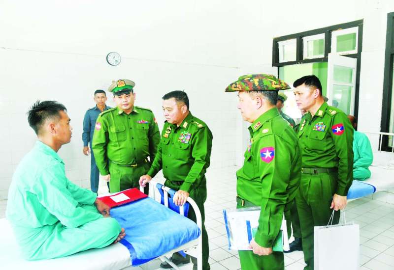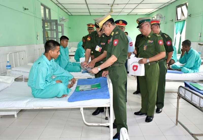 တပ်မတော်ကာကွယ်ရေးဦးစီးချုပ် ဗိုလ်ချုပ်ကြီး ရဲဝင်းဦးသည် ဇနီး ဒေါ်နီလာ၊ ကာကွယ်ရေးဦးစီးချုပ်ရုံးမှ အဆင့်မြင့်တပ်မတော်အရာရှိကြီးများနှင့် ဇနီးများ၊ တြိဂံဒေသတိုင်းစစ်ဌာနချုပ်တိုင်းမှူးနှင့် တာဝန်ရှိသူများလိုက်ပါ၍ ယနေ့နံနက်ပိုင်းတွင် မိုင်းဖြတ်မြို့ရှိ နယ်မြေခံတပ်မတော်ဆေးရုံ၌ တက်ရောက်ကုသမှုခံယူလျက်ရှိသည့် အရာရှိ၊ စစ်သည်များ၊ မိသားစုဝင်များ၊ မြန်မာနိုင်ငံရဲတပ်ဖွဲ့ဝင်များနှင့် ပြည်သူ့စစ် (ဌာနေ) တပ်ဖွဲ့ဝင်များအား သွားရောက်ကြည့်ရှုအားပေးစကားပြောကြားသည်။