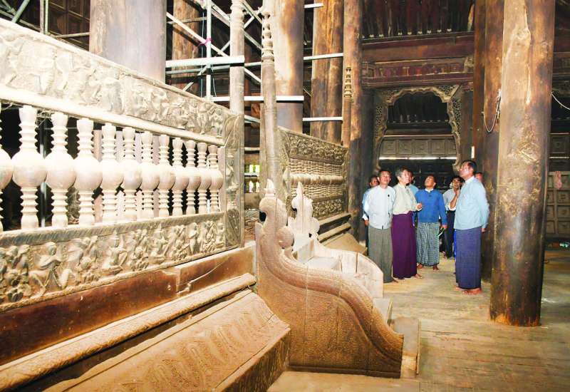 ဟိုတယ်၊ ခရီးသွားလာရေးနှင့် ယဉ်ကျေးမှုဝန်ကြီးဌာန ပြည်ထောင်စုဝန်ကြီး ဦးမောင်မြင့်သည် မန္တလေးတိုင်းဒေသကြီးဝန်ကြီးချုပ် ဦးမျိုးအောင်နှင့် တိုင်းဒေသကြီးဝန်ကြီးများ၊ ဝန်ကြီးဌာနမှ ညွှန်ကြားရေးမှူးချုပ်များ၊ တာဝန်ရှိသူများနှင့်အတူ ယနေ့နံနက်ပိုင်းတွင် တံတားဦးခရိုင် အင်းဝမြို့ဟောင်းရှိ ရှေးဟောင်း အဆောက်အအုံ၊ စေတီ၊ ပုထိုးများနှင့် မန္တလေးနန်းမြို့ရိုး ပြုပြင်ထိန်းသိမ်းနေမှုများကို ကြည့်ရှုစစ်ဆေးသည်။