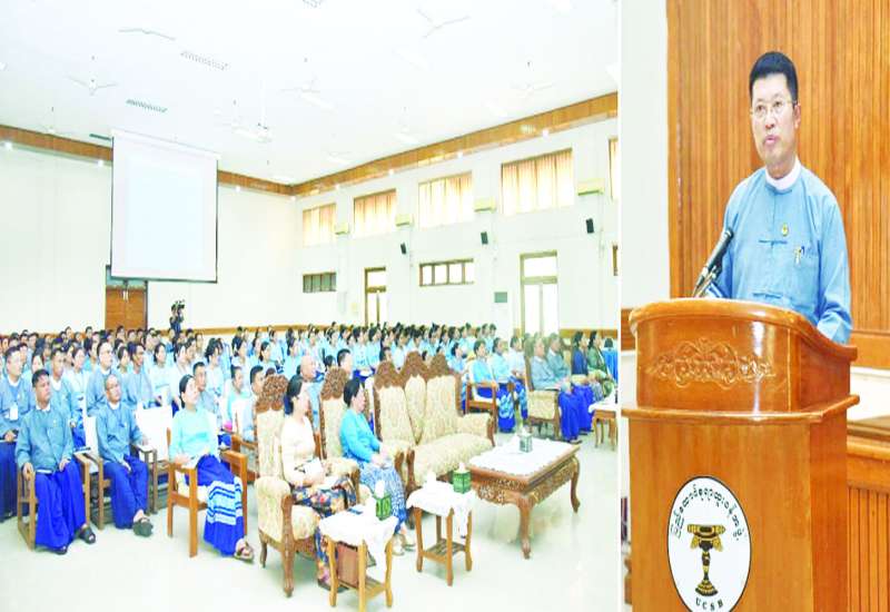 နိုင်ငံတော်သမ္မတ၏ လမ်းညွှန်ချက်များနှင့် အစိုးရသစ်၏ ရက် ၁၀၀ စီမံကိန်းများအပေါ် ပြည်ထောင်စုရာထူးဝန်အဖွဲ့မှ ဆက်လက်ဆောင်ရွက်မည့်အစီအမံများ ရှင်းလင်းပွဲကို ယနေ့မွန်းလွဲပိုင်းက ရုံးအမှတ် (၁၇) ပြည်ထောင်စုရာထူးဝန်အဖွဲ့ စုပေါင်းခန်းမ၌ ကျင်းပသည်။