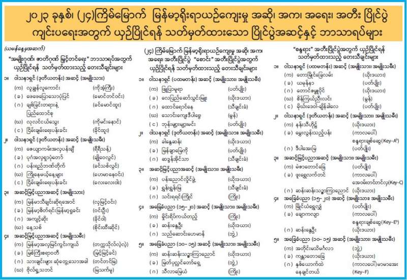 ၂၀၂၃ ခုနှစ်၊ (၂၄)ကြိမ်မြောက် မြန်မာ့ရိုးရာယဉ်ကျေးမှု အဆို၊ အက၊ အရေး၊ အတီး ပြိုင်ပွဲကျင်းပရေးအတွက် ယှဉ်ပြိုင်ရန်သတ်မှတ်ထားသော ပြိုင်ပွဲအဆင့်နှင့် ဘာသာရပ်များ