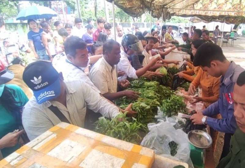 ဆိုင်ကလုန်းမုန်တိုင်း(မိုခါ)တိုက်ခတ်မှုကြောင့် မုန်တိုင်းဒဏ်သင့် ဒေသခံပြည်သူများနှင့် ဌာနဆိုင်ရာ ဝန်ထမ်းများ၏ စားသောက်ရေးအဆင်ပြေစေရန်နှင့် မိမိတို့အလိုရှိရာ စားသောက်ကုန်ပစ္စည်းများကို ဈေးနှုန်းသက်သာစွာဖြင့် ဝယ်ယူစားသောက်နိုင်ရေးအတွက် အနောက်ပိုင်းတိုင်းစစ်ဌာနချုပ်၊ နယ်မြေခံတပ်မတော်သားများနှင့် တာဝန်ရှိသူများက နေ့စဉ်ရောင်းချပေးလျက်ရှိသည်။
