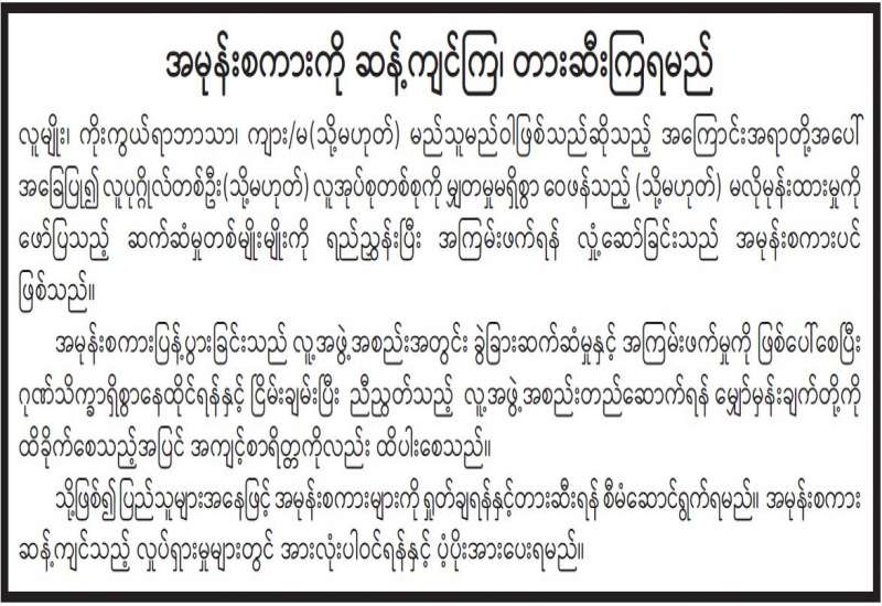 ပြန်ကြားရေးဝန်ကြီးဌာနသည် ပြည်ထောင်စုအစိုးရ၏ သဘောတူညီချက်ဖြင့် ပုံနှိပ်ခြင်းနှင့် ထုတ်ဝေခြင်းလုပ်ငန်း နည်းဥပဒေများကို အမိန့်ကြော်ငြာစာအမှတ် (၄၈/၂၀၁၄) ဖြင့် ၂၀၁၄ ခုနှစ်၊ အောက်တိုဘာလ (၁၀) ရက်နေ့တွင် ထုတ်ပြန်ခဲ့ပြီးနောက် လုပ်ငန်းအသိအမှတ်ပြု လက်မှတ်လျှောက်ထားလာပါက ပုံနှိပ်ခြင်းနှင့်ထုတ်ဝေခြင်းလုပ်ငန်း နည်းဥပဒေများနှင့်အညီစိစစ်၍ လုပ်ငန်းအသိအမှတ်ပြု လက်မှတ်များကို ခွင့်ပြုပေးလျက်ရှိပါသည်။
