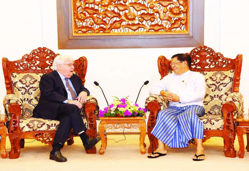 ပြည်ထောင်စုအစိုးရအဖွဲ့ရုံးဝန်ကြီးဌာန (၂)၊ ပြည်ထောင်စုဝန်ကြီး ဦးကိုကိုလှိုင်သည် ကုလသမဂ္ဂ လူသားချင်းစာနာထောက်ထားမှုဆိုင်ရာနှင့် အရေးပေါ်ကယ်ဆယ်ရေးဆိုင်ရာ ညှိနှိုင်းရေးမှူး၊ ကုလ သမဂ္ဂ လူသားချင်းစာနာထောက်ထားမှုဆိုင်ရာ ညှိနှိုင်းရေးရုံး (UNOCHA) ၏ အကြီးအကဲ Mr. Martin Griffiths ဦးဆောင်သည့် ကိုယ်စားလှယ်အဖွဲ့ကို ယနေ့ညနေ ၄ နာရီခွဲတွင် နေပြည်တော်ရှိ နိုင်ငံခြားရေးဝန်ကြီးဌာန၌ လက်ခံတွေ့ဆုံသည်။