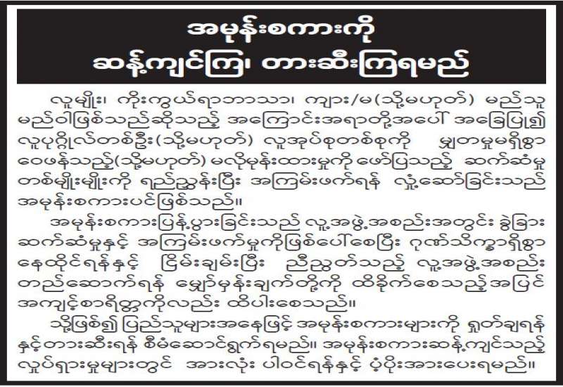 အမုန်းစကားကို ဆန့်ကျင်ကြ၊ တားဆီးကြရမည်