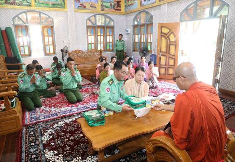 ရခိုင်ပြည်နယ်၊ စစ်တွေမြို့၌ မိုခါမုန်တိုင်းတိုက်ခတ်မှုကြောင့် အမိုးလန်ပျက်စီးမှုများ ဖြစ်ပေါ်ခဲ့သည့် အဘယရက္ခိတပရိယတ္တိစာသင်တိုက်နှင့် ပညာလင်္ကာရ ဘုန်းတော်ကြီးကျောင်းတိုက်များရှိ သာသနိက အဆောက်အဦများ ပြုပြင်ပြီးစီးမှုအခြေအနေနှင့် ဆက်လက်ပြုပြင်ဆောင်ရွက်နေမှု အခြေအနေများကို ယနေ့နံနက်ပိုင်းတွင် အနောက်ပိုင်းတိုင်းစစ်ဌာနချုပ်တိုင်းမှူး ဗိုလ်ချုပ်ထင်လတ်ဦးနှင့် တာဝန်ရှိသူများက သွားရောက်ကြည့်ရှုစစ်ဆေးပြီး လိုအပ်သည်များ ညှိနှိုင်းဆောင်ရွက်ပေးကာ အဆိုပါကျောင်းတိုက်များမှ သံဃာတော်များအား ဖူးမြော်ကြည်ညို၍ ဝါဆို သင်္ကန်း၊ ဆွမ်း ဆန်တော်၊ လှူဖွယ်ပစ္စည်းများ၊ နဝကမ္မအလှူငွေများနှင့် နေ့ဆွမ်းဆက်ကပ်လှူဒါန်းကြသည်။