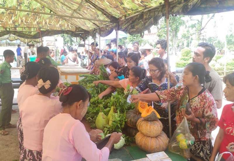 ဆိုင်ကလုန်းမုန်တိုင်း(မိုခါ)တိုက်ခတ်မှုကြောင့် မုန်တိုင်းဒဏ်သင့် ဒေသခံပြည်သူများနှင့် ဌာနဆိုင်ရာဝန်ထမ်းများ၏ စားသောက်ရေးအဆင်ပြေစေရန်နှင့် မိမိတို့အလိုရှိရာ စားသောက်ကုန်ပစ္စည်းများကို ဈေးနှုန်းသက်သာစွာဖြင့် ဝယ်ယူစားသောက်နိုင်ရေးအတွက် အနောက်ပိုင်းတိုင်းစစ်ဌာနချုပ်၊ နယ်မြေခံတပ်မတော်သားများနှင့် တာဝန်ရှိသူများက နေ့စဉ်ရောင်းချပေးလျက်ရှိသည်။