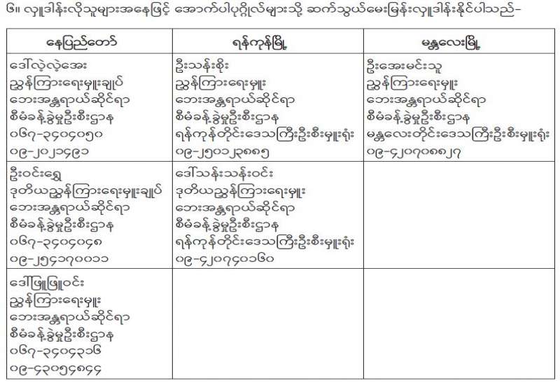 ၁။ မြန်မာနိုင်ငံတွင် ၁၄-၅-၂၀၂၃ ရက်နေ့တွင် ဖြစ်ပွားခဲ့သည့် အလွန့်အလွန်အားကောင်းသော ဆိုင်ကလုန်းမုန်တိုင်း မိုခါကြောင့် ဘေးသင့်ပြည်သူများအတွက် ပါဝင်လှူဒါန်းလိုသော စေတနာရှင်ပြည်သူများအနေဖြင့် မြန်မာကျပ်ငွေစာရင်းအမှတ် OA -011834 နှင့် နိုင်ငံခြားငွေစာရင်းအမှတ် 1DA- 0300086 သို့ ထည့်ဝင်လှူဒါန်းနိုင်ကြောင်း ကြေညာခဲ့ပါသည်။