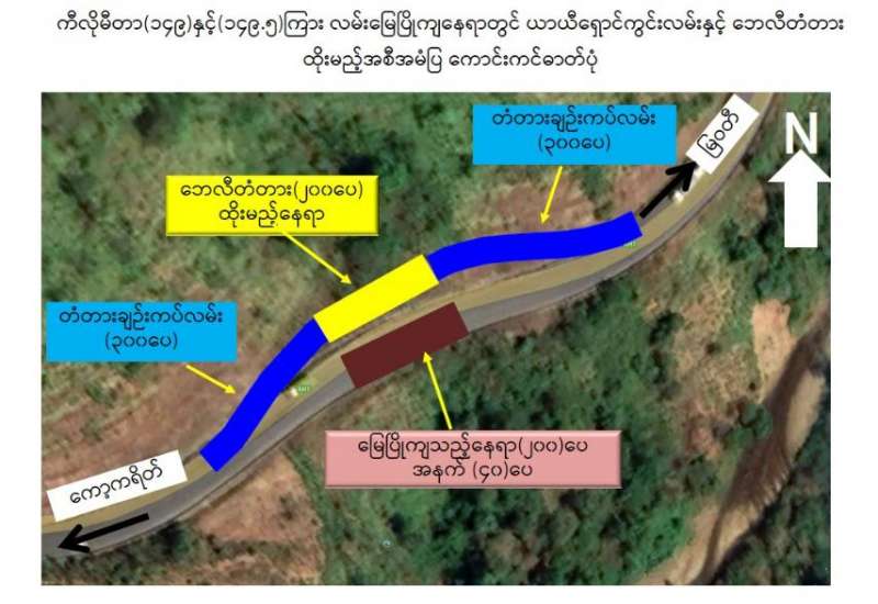 ကရင်ပြည်နယ်အတွင်း မိုးအဆက်မပြတ်ရွာသွန်းမှုကြောင့် မြစ်ရေ၊ ချောင်းရေလျှံခြင်း၊ မြေပြိုကျခြင်းများ ဖြစ်ပေါ်လျက်ရှိခြင်းကြောင့် သြဂုတ်လ ၇ ရက်နေ့က မြဝတီ – ကော့ကရိတ် အာရှကားလမ်းမကြီး၊ တောနော်ရေတံခွန်အနီး မိုင်တိုင်အမှတ်(၁၄၉)နှင့် (၁၅၀) အကြားနေရာတွင် ကားလမ်းအောက်ခံ မြေသားအကျယ် ၃၃ ပေရှိ ကတ္တရာခင်း ကားလမ်း အရှည် ၁၅၀ ပေခန့်သည် ပဲ့ကျပျက်စီးခဲ့ရာ ယာဥ်သွားလာမှုယာယီရပ်ဆိုင်းထားရပြီး အဆိုပါလမ်းပိုင်းအမြန်ဆုံးပြန်လည်ပြုပြင်နိုင်ရေးနှင့်ပတ်သက်ပြီး ဆောင်ရွက်သွားမည့်အခြေအနေများကို ကရင်ပြည်နယ် လမ်းဦးစီးဌာနမှ ညွန်ကြားရေးမှူး ဦးအောင်ညိုအား တွေ့ဆုံမေးမြန်းခဲ့ပါသည်။