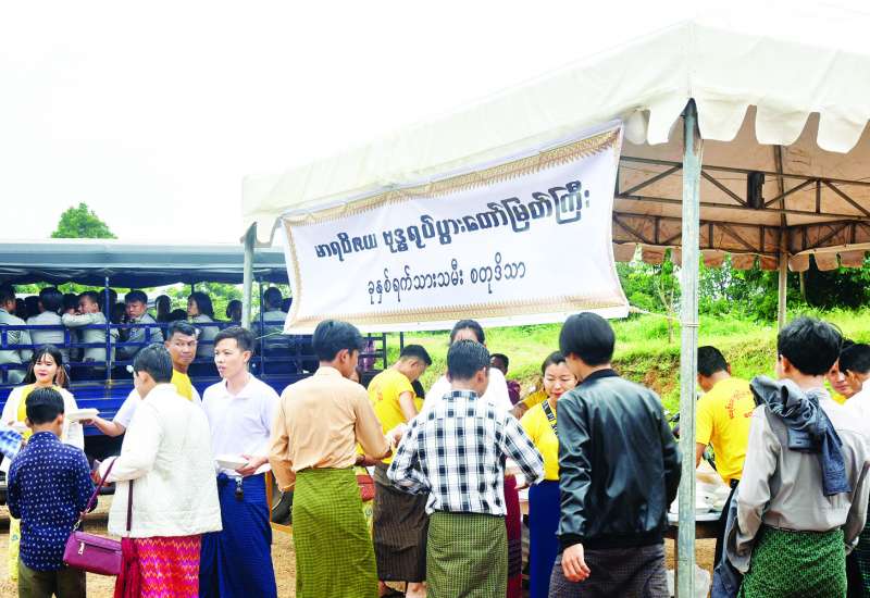 ဆိုင်ကလုန်းမုန်တိုင်း(မိုခါ)တိုက်ခတ်မှုကြောင့် မုန်တိုင်းဒဏ်သင့်ဒေသခံပြည်သူများနှင့် ဌာနဆိုင်ရာဝန်ထမ်းများ၏ စားသောက်ရေးအဆင်ပြေစေရန်နှင့် မိမိတို့အလိုရှိရာ စားသောက်ကုန်ပစ္စည်းများကို ဈေးနှုန်းသက်သာစွာဖြင့် ဝယ်ယူစားသောက်နိုင်ရေးအတွက် အနောက်ပိုင်းတိုင်းစစ်ဌာနချုပ်၊ နယ်မြေခံတပ်မတော်သားများနှင့် တာဝန်ရှိသူများက နေ့စဉ်ရောင်းချပေးလျက်ရှိသည်။