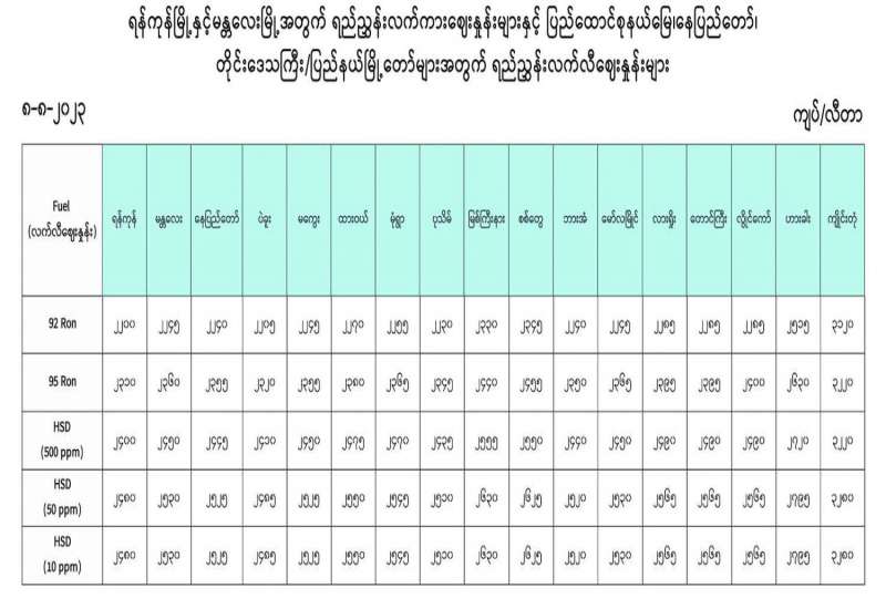 ရန်ကုန်နှင့် မန္တလေးမြို့အတွက် ရည်ညွှန်းလက်ကားဈေးနှုန်းများနှင့် ပြည်ထောင်စုနယ်မြေ နေပြည်တော်၊ တိုင်းဒေသကြီး/ ပြည်နယ် မြို့တော်များအတွက် ရည်ညွှန်းလက်လီဈေးနှုန်းများ