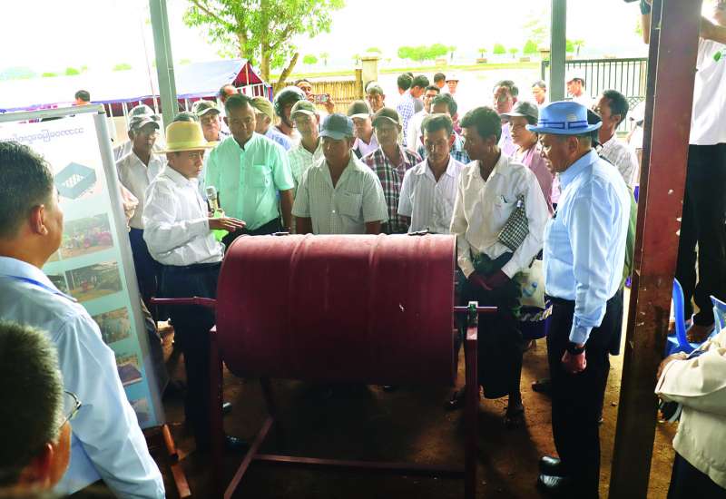 လယ်ယာထွက်သီးနှံအကြွင်းအကျန်များ၊ စားဖိုဆောင်စွန့်ပစ်ပစ္စည်းများမှ စီးပွားဖြစ်သဘာဝမြေသြဇာ ပြုလုပ်ခြင်းသရုပ်ပြပွဲကို ယနေ့နံနက်ပိုင်းက ဇမ္ဗူသီရိမြို့နယ် တဲကြီးကုန်းကျေးရွာ၌ ကျင်းပရာ စိုက်ပျိုးရေး၊ မွေးမြူရေးနှင့် ဆည်မြောင်းဝန်ကြီးဌာန ဒုတိယဝန်ကြီး ဒေါက်တာတင်ထွဋ်၊ ဒုတိယဝန်ကြီး ဦးဗိုလ်ဗိုလ်ကျော်၊ စက်မှုလယ်ယာဦးစီးဌာန ညွှန်ကြားရေးမှူးချုပ်နှင့် စိုက်ပျိုးရေးဦးစီးဌာန၊ ဆည်မြောင်းနှင့် ရေအသုံးချမှု စီမံခန့်ခွဲရေးဦးစီးဌာနတို့မှ တာဝန်ရှိသူများ၊ တပ်ကုန်း၊ လယ်ဝေး၊ ပျဉ်းမနားနှင့် ဇမ္ဗူသီရိမြို့နယ်များမှ တောင်သူများ တက်ရောက်ကြသည်။